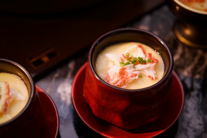 第四吃「帝王蟹肉蒸蛋」蟹高湯與滑順蛋液完美融合,每一匙都是溫潤細膩的感動。