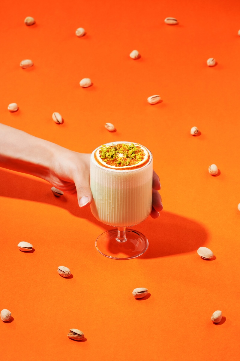 「W Tipsy Tea Feat. PISTA CIAO」餐食採用PISTA CIAO之經典「特濃開心果奶酥醬」為靈魂設計,其原料嚴選被譽為綠寶石、僅佔全球產量1%的西西里開心果,源自義大利的豐饒火山地質孕育出無可比擬的芳醇;經過微烘烤與冷磨精製工藝處理的開心果醬釋放炭焙香,激發台北W飯店主廚與調酒師團隊的創作靈感。WOOBAR招牌下午茶名稱中的Tipsy一詞,旨在強調專屬W的獨家調酒文化,悠閒午後也能微醺度過!本季3杯創意特調首推「NUT ME UP」,揉合奶酒、杏仁酒、伏特加、優格與開心果奶酥醬,堅果氣息與奶香層層堆疊,綿密奶蓋上覆以新鮮柑橘與開心果碎,口感如甜點般絲滑。帶有海島風情的「TONIC NUTCASE」,將開心果、檸檬葉、薄荷茶與琴酒一同舒肥做為基底,融入萊姆汁及香料甜酒,勾勒出微辛鮮明、清爽卻不單薄的味覺輪廓。不嗜酒的賓客另可選擇無酒精調飲「CHA & NUT」,英式早餐茶搭配燕麥奶、榛果糖漿與蜂蜜,藉由溫潤奶茶佐餐,襯托開心果的迷人細緻。