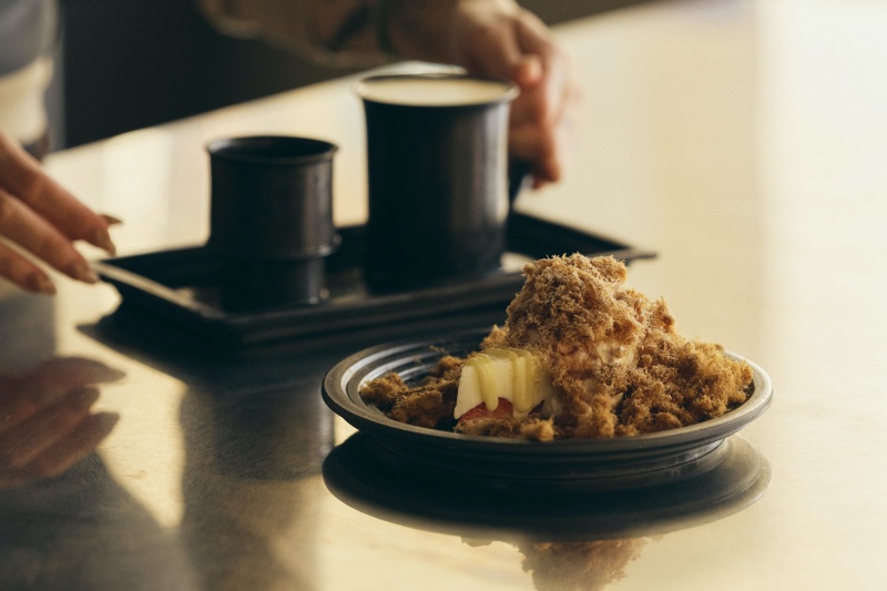 「抹 More」自 2017 年創立以來,便以高品質原料與不斷創新的鹹甜滋味累積極高人氣,「paopao」則將這份任性完整復刻,並在咖啡領域展現更專業的格局。蛋糕品項從「抹 More」精選「季節生乳酪蛋糕」(開幕期間適逢「草莓肉鬆季」,因選用台灣本土草莓,「草莓肉鬆季」時間約為11月中下旬至隔年3月下旬,實際供應時間視草莓品質及產量而定)及「鹽昆布牛奶糖鮮奶油蛋糕」;「大蒜酸奶白巧布朗尼」則是paopao限定品項,底部鋪上自製油封大蒜酸奶,口感輕盈有層次,溫熱的白巧克力堅果布朗尼堆疊而上,放上一球香草冰淇淋,隨時間浸潤糕體,最後撒上鹽之花,讓整體口感收斂卻讓甜感縈繞口腔。