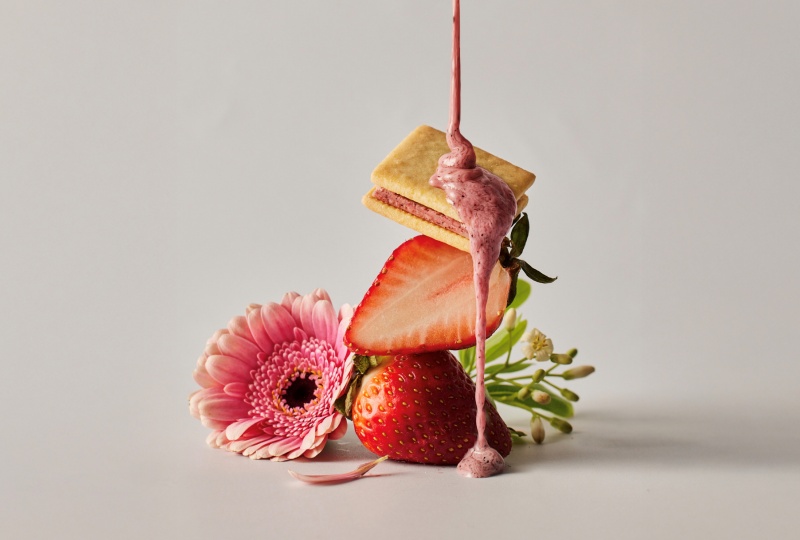 「野莓巧克力夾心」則選用波蘭野莓茶粉融合草莓、黑醋栗與覆盆莓,搭配濃郁巧克力內餡,夾入酥香杏仁餅與細緻貓舌餅之間,外脆內柔、風味深刻。三款限定口味透過層層堆疊的香氣與口感,為婚約時刻增添優雅且難忘的味覺記憶。
