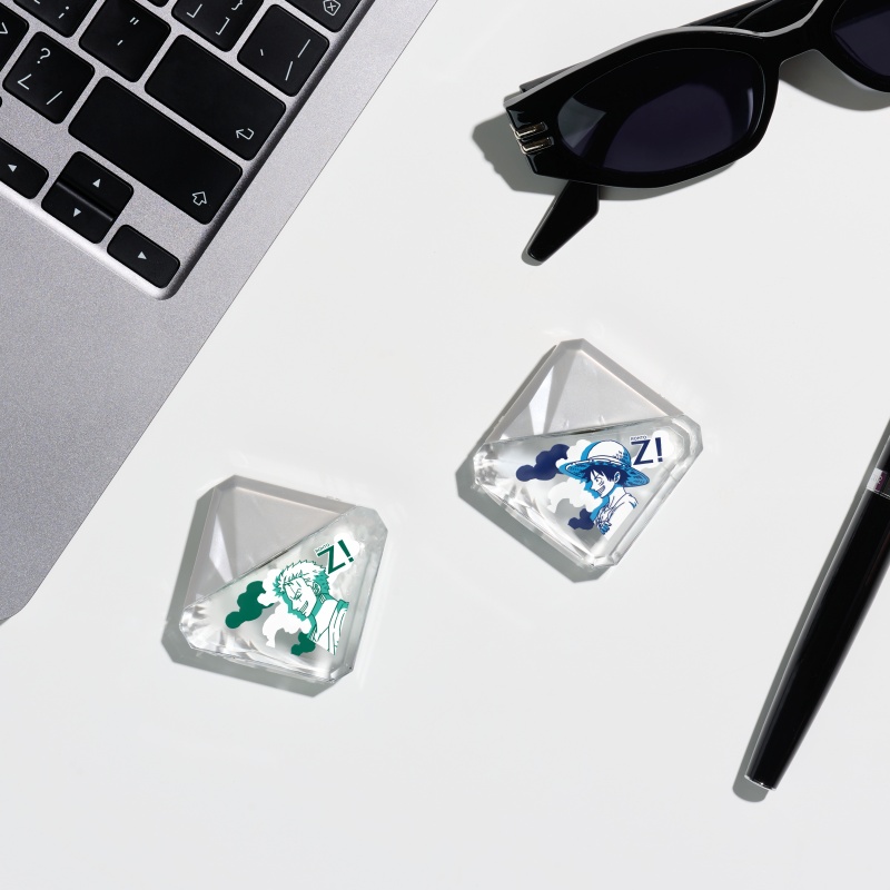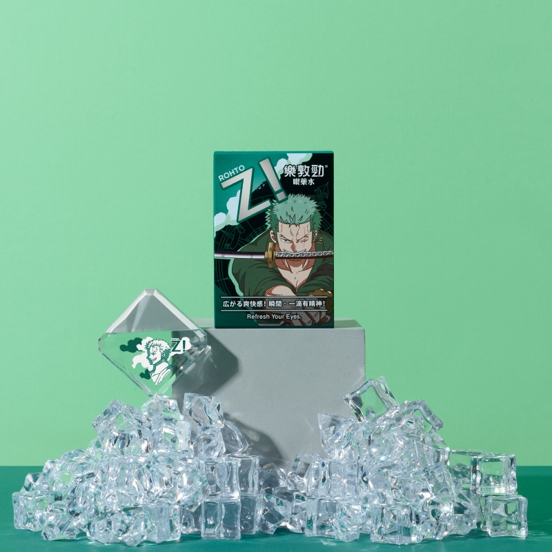 深綠色的索隆款以經典的羅盤作為背景點綴,嘴裡叼著一把刀的酷勁,表現出使用樂敦勁眼藥水後,擺脫疲倦,勇往直前的能量感。外盒打開內藏有驚喜地圖,而眼藥水瓶身上人物與雲朵的多層次設計,重現魯夫、索隆在遼闊的大海與壯麗的天空下夢想啟航的氛圍,帶領著大家一起航向偉大的航道!