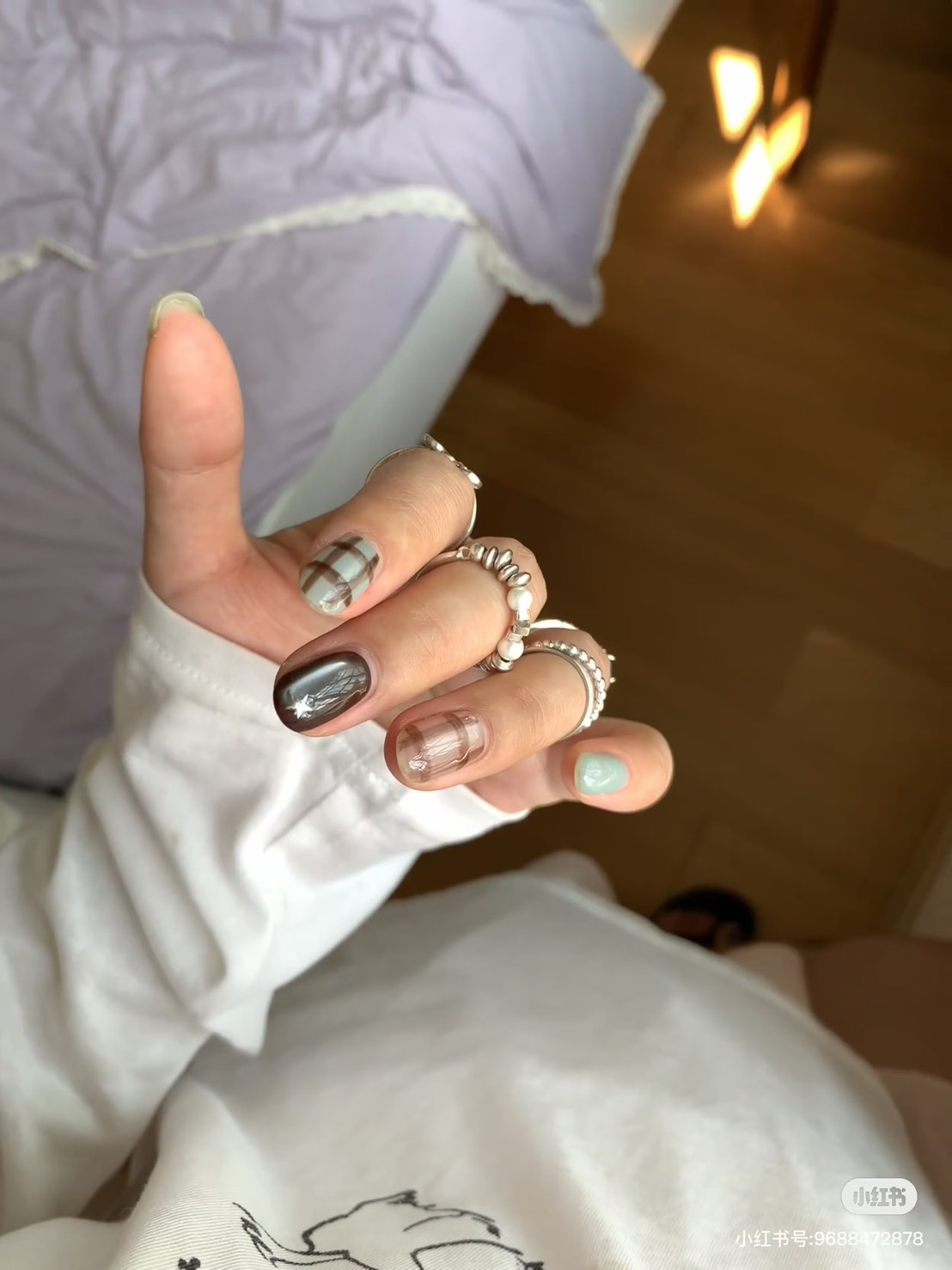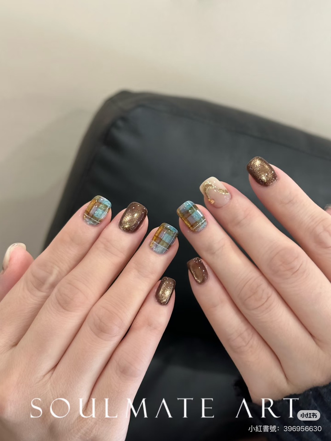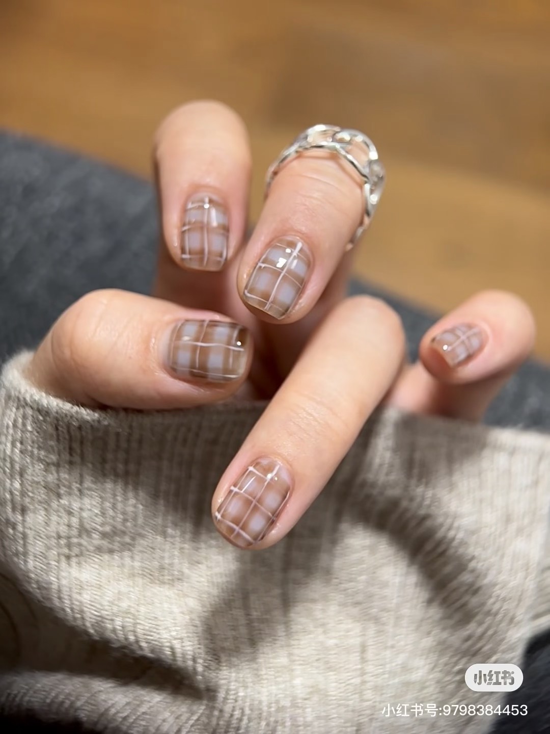 棕色給了我們安定的力量,藍色給了我們遠行的勇氣,人生不該只有一種顏色,它需要棕的厚度,也需要藍的深度,當我們能在繁忙的現實中保持沉著,又能在平凡的日常裡懷抱夢想,那便是最成熟的生活狀態,學會在棕色中腳踏實地,在藍色中仰望星空,讓人生既有溫度,也有思考,換上「藍棕格紋指彩」最終,我們都會在這兩種顏色的交錯中,找到屬於自己的光——不耀眼,卻深遠。