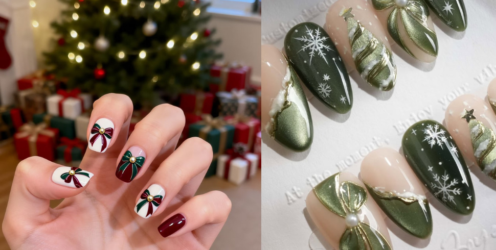 冬夜飄雪,「聖誕蝴蝶結指彩」用禮物綁著那份真心