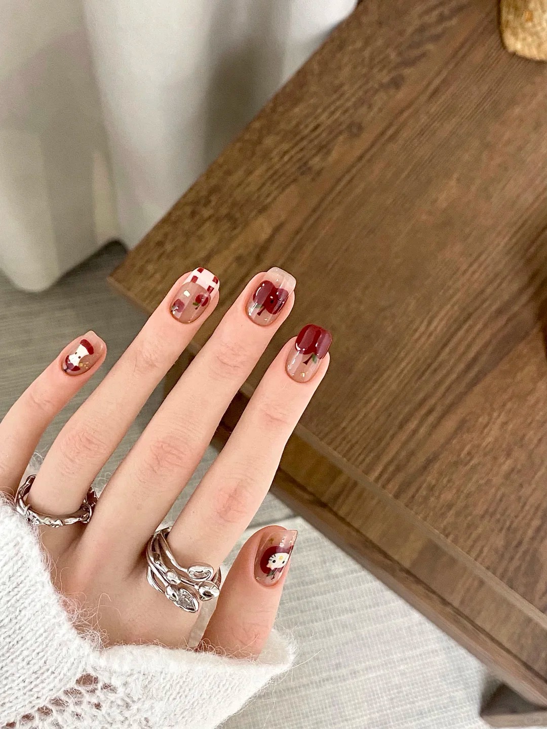 當煩惱被切成小塊,事情就不再那麼可怕,今天只需要處理一片,明天再慢慢接住下一片,沒有誰規定一定要一次承擔全部,「手繪蘋果指彩」不會催促你,它只是安靜地存在,陪你在忙亂之中找到一點節奏,那份清甜,像是在告訴你:生活雖然不完美,但總有一些小小的溫柔,願意為你留下。
