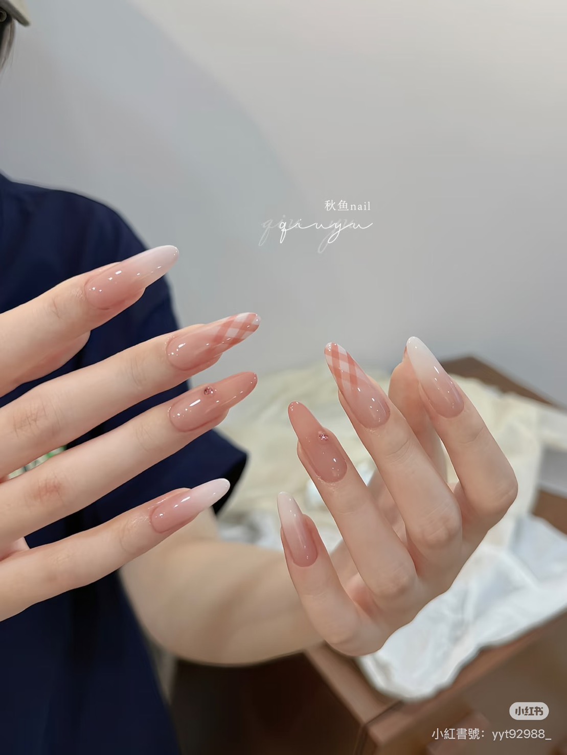 現在的我們,終於明白,成熟不必一次到位,可以今天比昨天多懂一點,可以在學習中調整,在靠近中修正,只要方向是向內安放自己,向外溫柔對待世界,就已經很好了,界線不是限制,而是讓我們走得更遠的方式,換上「漸層格紋指彩」在自己的節奏裡慢慢靠近生活、靠近愛,也靠近那個越來越穩定、越來越自在的自己。