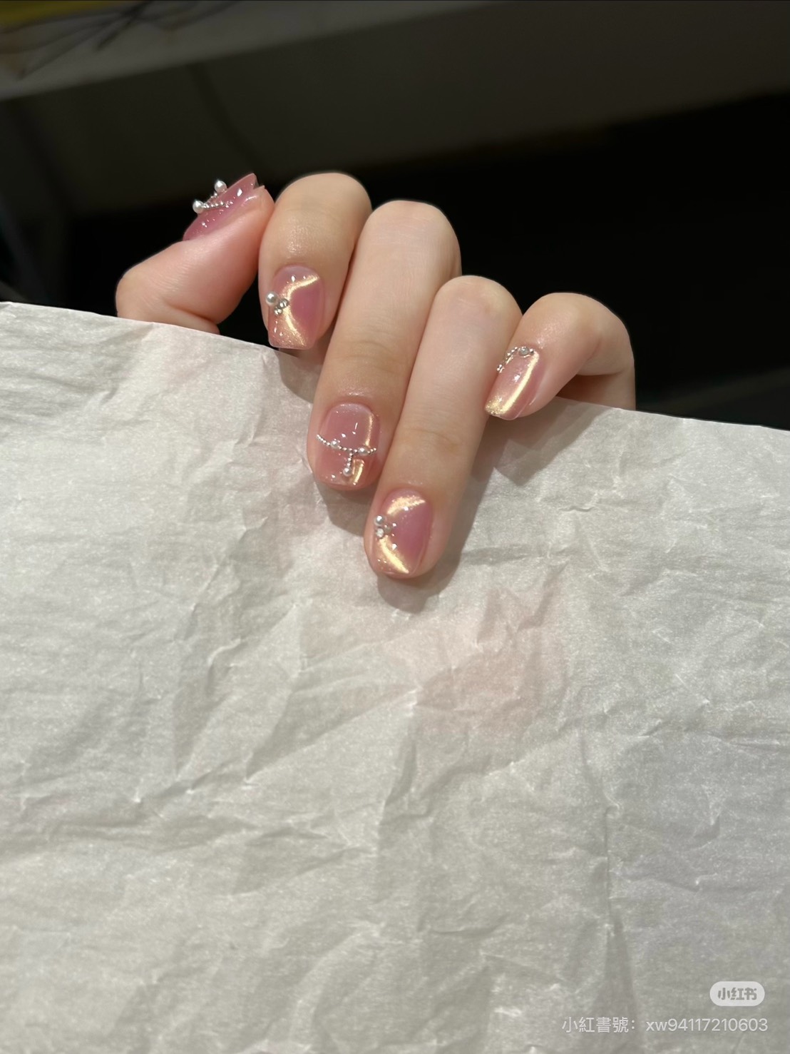 近期「緞帶貓眼指彩」成了大家喜愛的款式,它就像是一種日常的小小儀式。當每一次低頭看它,光線在指尖流動,柔軟的線條裡,藏著高級而溫柔的光芒,這光,不張揚,也不浮誇,卻足以在這些平凡的日子裡,讓我們感到被寵愛、被呵護的溫暖。