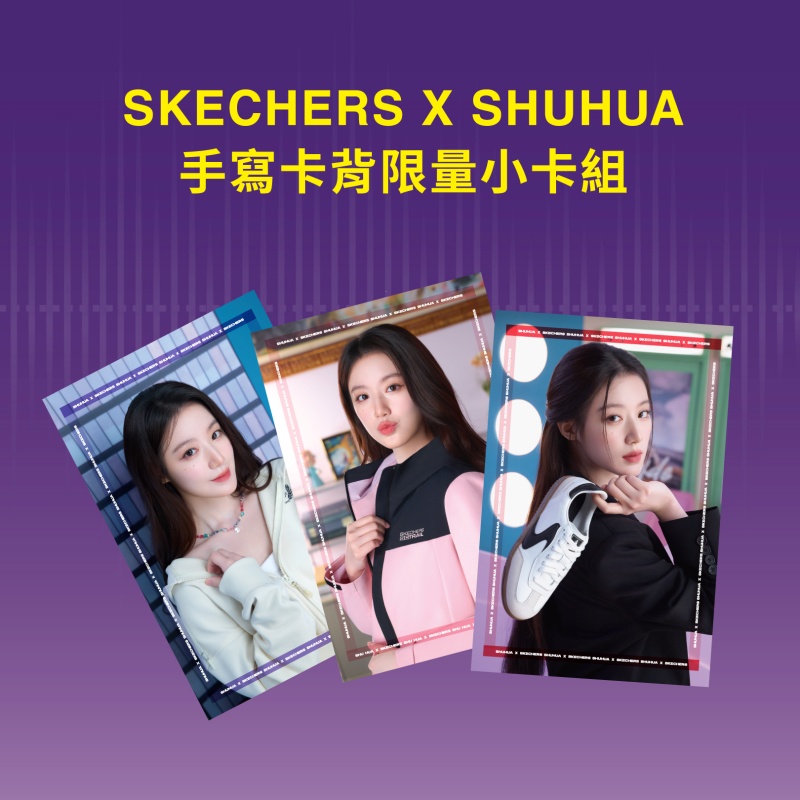 活動期間,SKECHERS 也同步祭出三大粉絲福利企劃,誠意十足、驚喜連連,邀請粉絲一起投入「舒式主場」的專屬狂歡。首先,自9月1日起,凡於全台 SKECHERS 門市、線上官方購物商城、或新光信義 A11 「我的舒式主場」快閃店內購買任一舒華同款商品,即可獲得【SKECHERS x SHUHUA 手寫卡背限量小卡組】,除了舒華造型卡面外,更有舒華專屬手寫卡背與簽名,絕對是粉絲們不容錯過的珍藏逸品,數量有限,送完為止。
