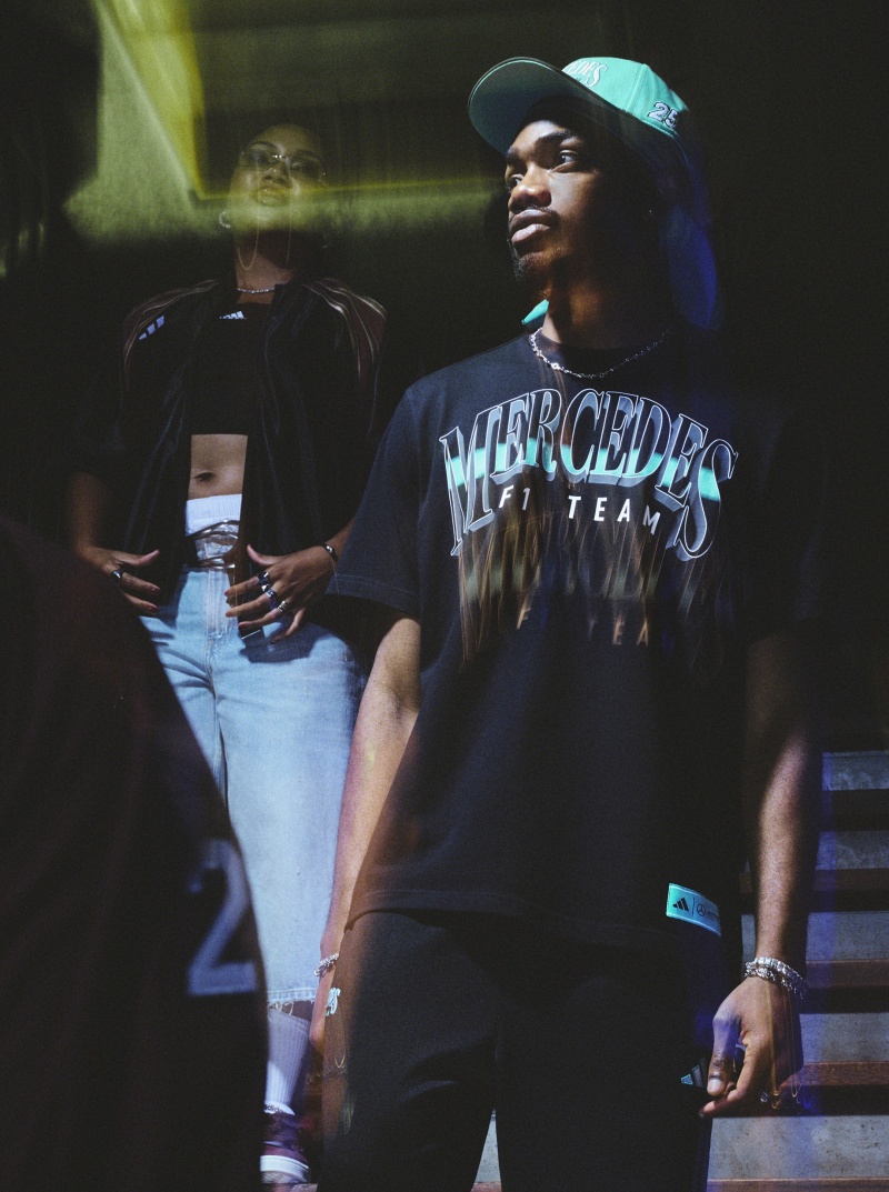 全新拉斯维加斯大獎賽主題服飾系列向FORMULA 1®賽事上具代表性的拉斯維加斯賽道致敬,也為賽車迷帶來嶄新設計風貌。靈感來自 2000 年代的街頭服飾與美式運動文化,除了配上adidas經典三線Logo與賓士的三芒星標誌外,配色更融合了Mercedes-AMG PETRONAS F1車隊經典黑、銀與薄荷綠配色,將FORMULA 1®極速奔馳的能量轉化為街頭態度,完美詮釋RACECORE的穿搭美學。